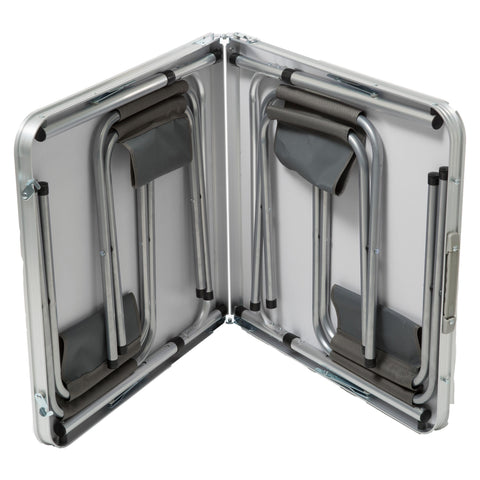 Avec son fini gris attrayant, cet ensemble s'adapte sans effort à n'importe quel décor, ajoutant une touche de classe à chaque occasion. La table et les tabourets se plient facilement, vous permettant de les ranger ou de les transporter avec une commodité inégalée. Cet ensemble offre une stabilité et une durabilité impressionnantes, garantissant qu'il reste une partie intégrante de vos repas pendant de nombreuses années.