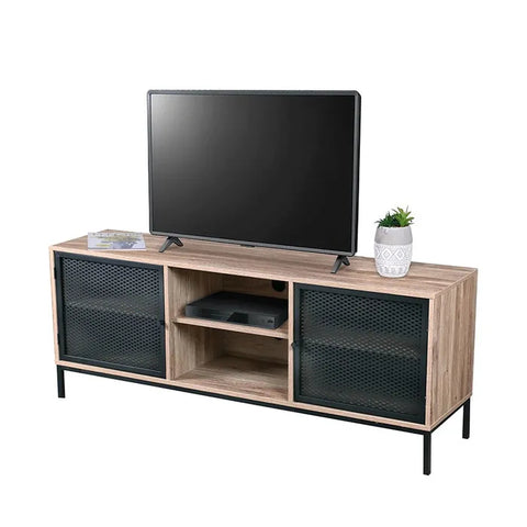 Avec ses étagères spacieuses derrière des portes grillagées, ce meuble offre suffisamment d'espace pour ranger vos équipements multimédia, jeux vidéo, DVD, et bien plus encore, tout en permettant une utilisation facile des télécommandes. Le bois utilisé dans la construction de ce meuble est facile à nettoyer et résistant aux rayures, ce qui vous permet de maintenir son aspect esthétique sans effort. Au-delà de son utilisation comme meuble TV, il peut servir de console pour votre entrée ou de buffet dans votre salle à manger, offrant ainsi une multitude d'options d'utilisation dans votre maison.